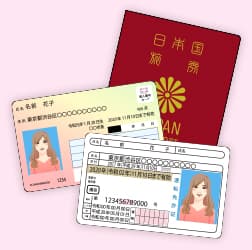 学生証、健康保険証、期限切れの免許証などは無効なのでご注意ください。